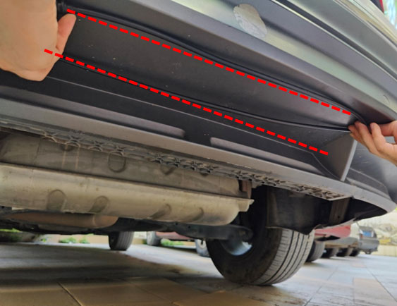 1、在保险杠后面确定好感应条安装位置(需要感应脚踢的位置)。