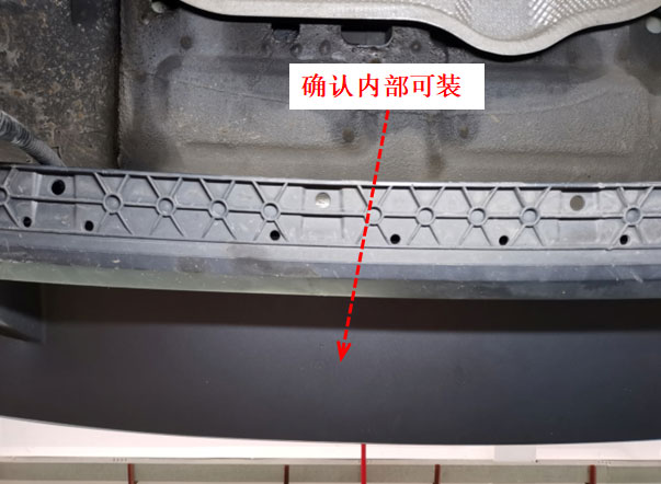4、用自攻螺钉从保险杠底部往上拧到车内,固定脚踢感应条安装座。