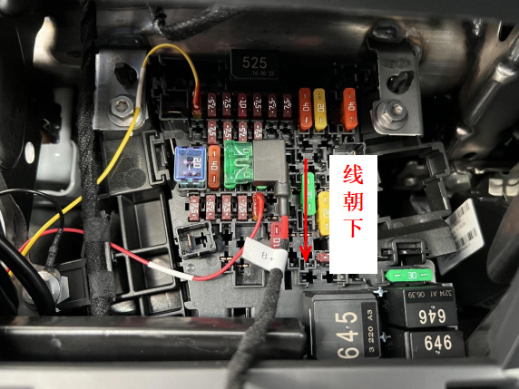 24、将取电器插入保险盒,注意线朝向。