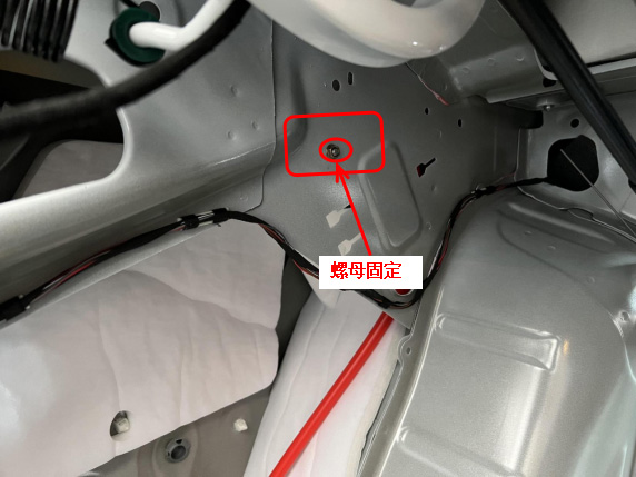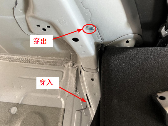27、从开孔处进线,布撑杆线到尾箱左侧。