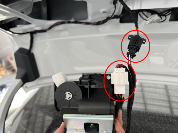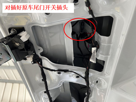 18、锁信号线对插好原车尾门开关插头。