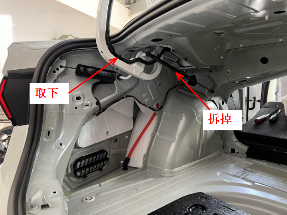 5、拆开尾门饰板。