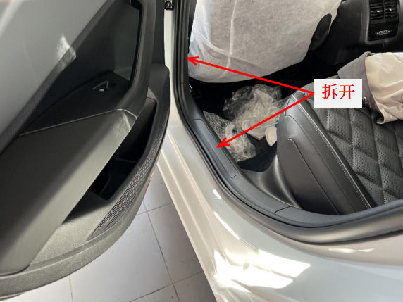 2、拆开左后排门槛饰板,B柱饰板。