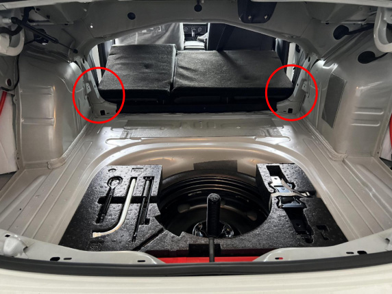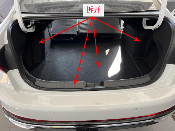 4、取出尾箱垫板,拆出尾箱左右两侧饰板。