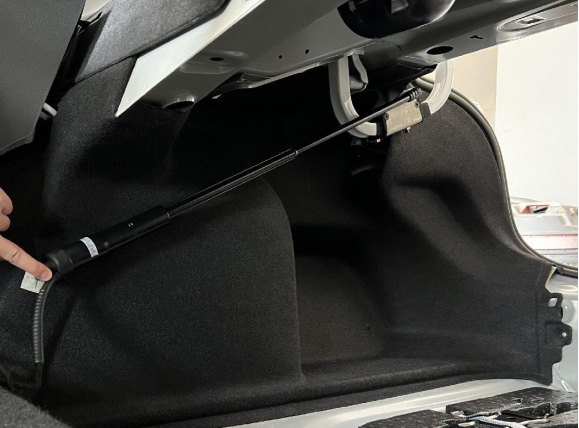 26、安装电动撑杆,L在左,R在右(撑杆编码的第一个字母),撑杆带线的一端安装在车体,左右一样。
