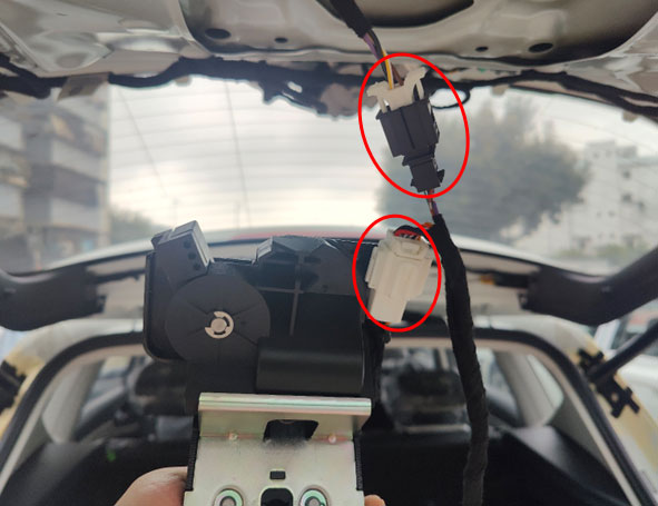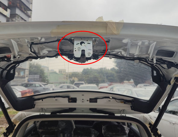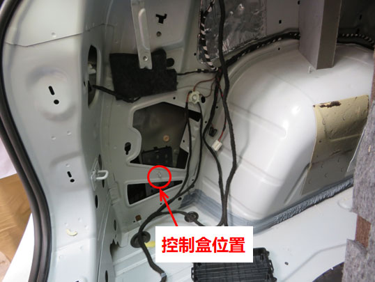 10、穿锁信号线到尾箱左侧(只穿线,不插插头)。