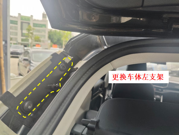 14、更换车体左支架,用原车螺钉。