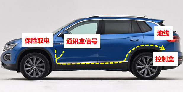 8、布锁信号线到尾箱左侧(未插胶壳先不插对插头)。