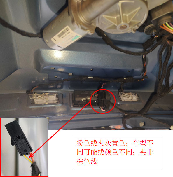 6、将锁信号线的粉色线,夹灰黄色线(非棕色线),电笔检测有电即夹对。